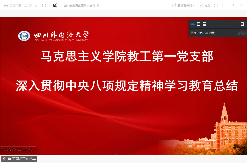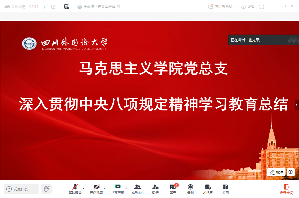 2025年9月20日,太阳成tyc7111cc各级党组织召开深入贯彻中央八项规定精神学习教育总结会议,党总支书记崔光军主持会议。