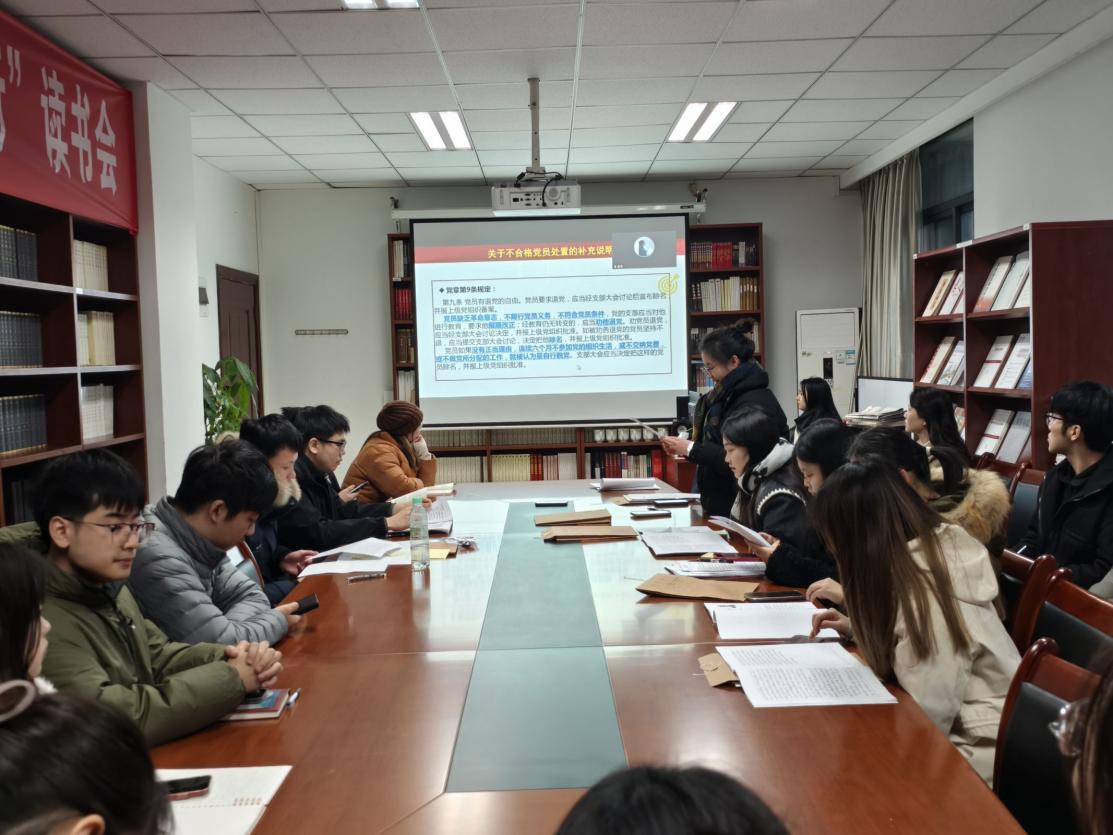 12月24日,四川外国语大学太阳成tyc7111cc研究生党支部在立德楼B503召开预备党员发展大会暨党员学习贯彻党的二十届三中全会精神培训。本次会议由研究生党支部书记王雨潇同志主持召开,支部全体党员及刘思贝等发展对象参会。