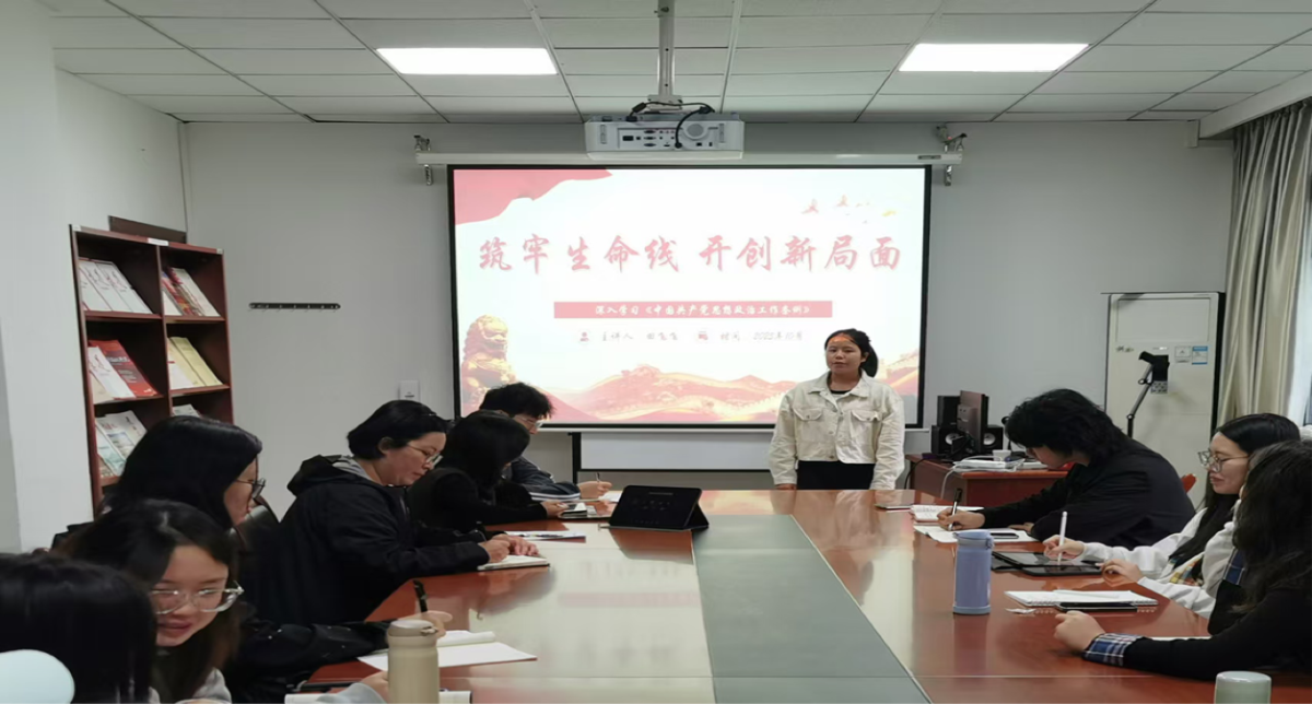 田飞飞同志主讲《学习中国共产党思想政治工作条例》,表示我们太阳成tyc7111cc青年学生党员要带头学思想、铸忠诚,带头做好新时代新征程思想政治工作。