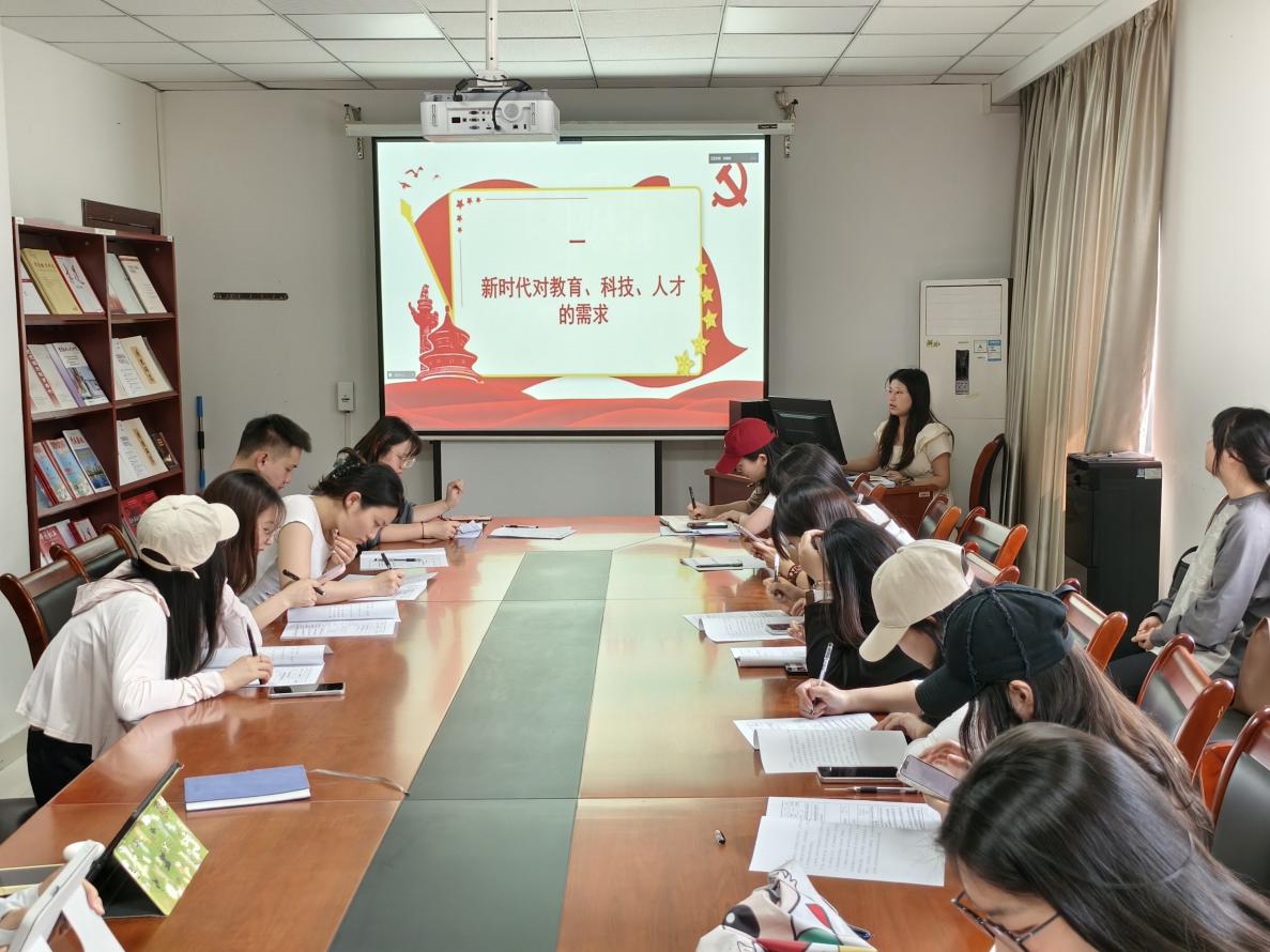 朱铭玥同志主讲学习《习近平:朝着建成科技强国的宏伟目标奋勇前进》,向春婷同志主讲学习《习近平:强化教育对科技和人才支撑作用 形成人才辈出人尽其才才尽其用生动局面》。