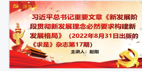 赵刚同志带领了大家共同学习了习近平总书记重要文章《新发展阶段贯彻新发展理念必然要求构建新发展格局》(2022年8月31日出版的《求是》杂志第17期),指出在党的二十大召开之际,作为一名党员同志,要深入学习理论知识,以理论知识指引具体实践,在实践中不断创新。