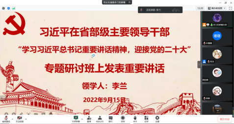首先,大家集体学习了习近平总书记在省部级主要领导干部“学习习近平总书记重要讲话精神,迎接党的二十大”专题研讨班上发表重要讲话。支部党员李兰同志指出习近平总书记的重要讲话贯穿着共产党人的初心使命,承载着民族复兴的伟大梦想,对于全党以更加饱满的精神状态建功新时代、奋进新征程,具有重大而深远的意义。
