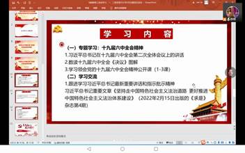 2022年3月25日,太阳成tyc7111cc教工第二党支部在腾讯会议平台开展线上“主题党日”活动。会议围绕党的十九届六中全会精神,以及部分党内规章制度、重要会议精神、学校重要文件开展专题学习和交流讨论。