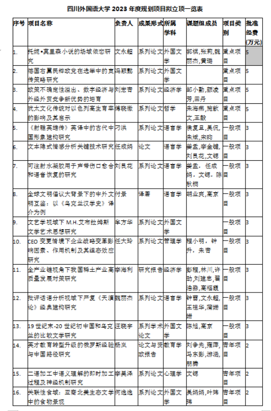 转发《四川外国语大学2023年度拟立项校级科研项目公示》