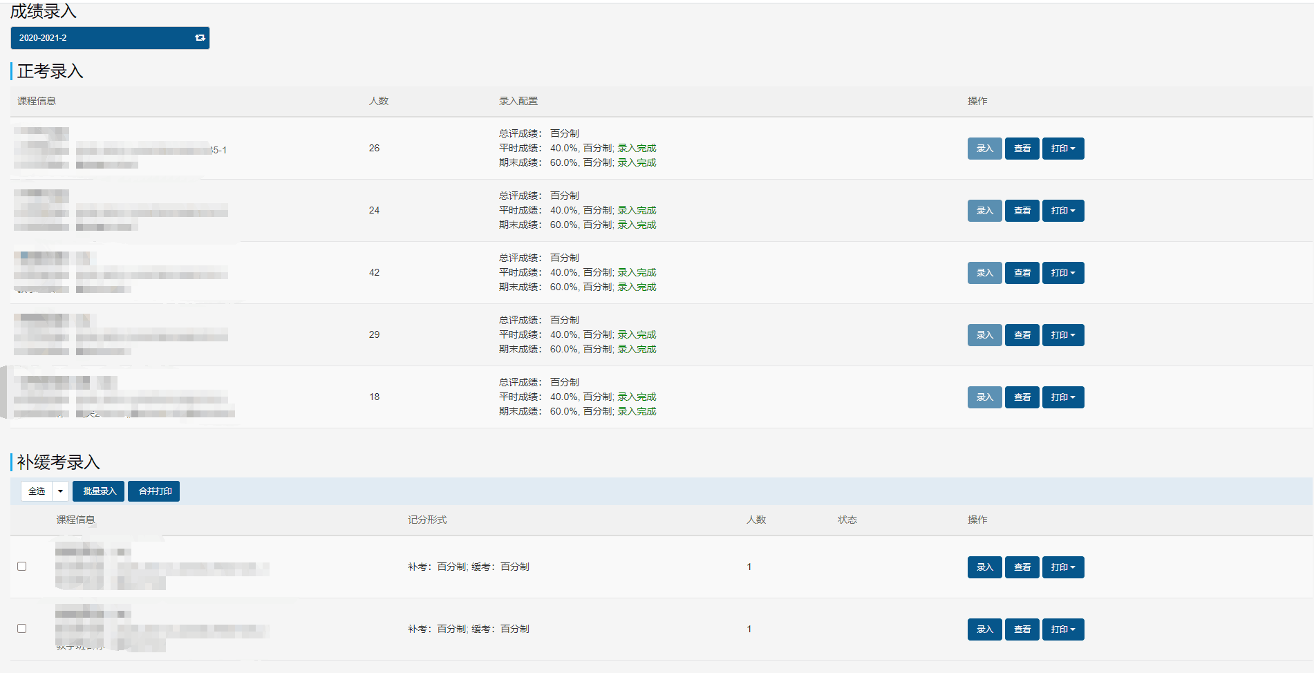 4.如补、缓考的学生因故经批准延期,该生缓考成绩暂不作记录,待重新参加考试后再录入补缓考分数;