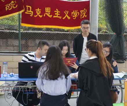1030分,我院马克思主义理论教研室主任申艳婷来到迎新工作的现场,详细了解同学们的报到情况,同时与在场的同学进行了亲密的交谈。新同学们感受到了热情与关怀,更加对研究生生活充满期待。