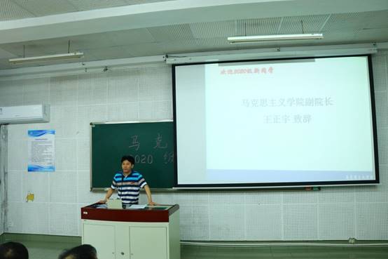 接下来,新生代表张洁同学发言。她表示非常荣幸能够加入马院这个大家庭,认为三年研究生生活也许转瞬即逝,但会一直保持团结、勤奋、严谨、求实的信念,带着马克思主义信仰在研究生生活中继续奋进。老生代表朱俊光向2020级新生传授经验,希望新生们选择正确方向、珍惜学习时间、加强身体锻炼。教师代表邓多文老师围绕“奋斗精神”这一主题,从“把握奋斗方向、提升奋斗能力、讲求奋斗策略”三个方面对新生提出了要求,希望新生们能够将其运用于学习及生活中。