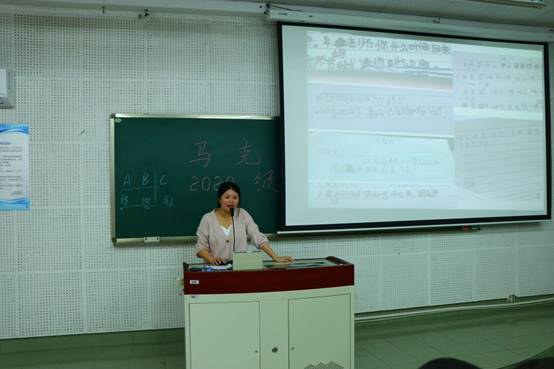 随后,新生胡亮分享了前往石柱土家族自治县支教的经历与感想。她详细介绍了四川外国语大学的研究生支教团,着重讲述了支教时的教学经历,分享了自己的收获与感想。