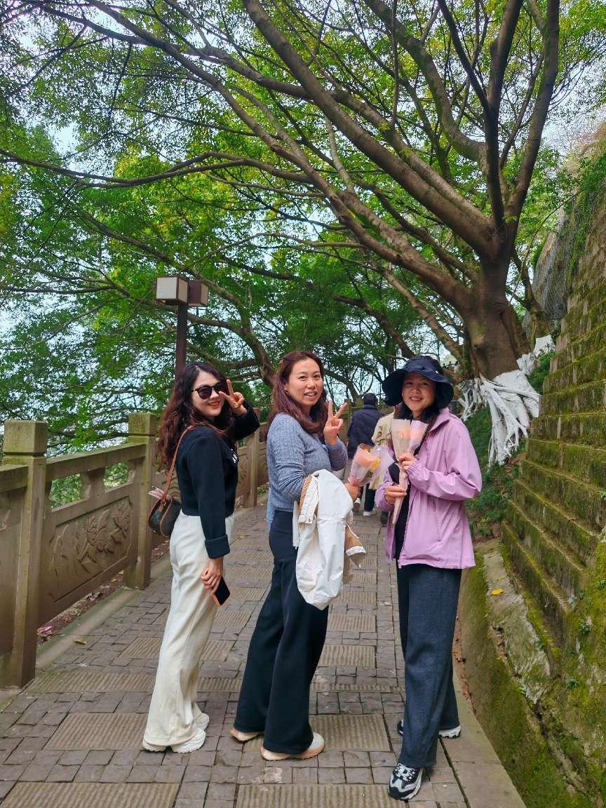 当日14时,参与活动的教职工齐聚大化步道入口,大家精神饱满、兴致盎然。活动沿半山崖线有序开展,老师们结伴而行,漫步临崖步道,欣赏春日繁花,依次探访红墙打卡点、“开往春天的列车” 观景台、巴山夜雨浮雕、杨闇公烈士铜像与烈士英名墙等文化点位。沿途,大家驻足观赏、交流感悟,既领略了嘉陵江与渝中半岛的秀美风光,也深入了解佛图关古隘口历史、巴山夜雨诗词文化与红色革命传统,实现了健身强体、文化浸润、思想熏陶三者有机融合,在行走中感受巴渝历史底蕴,在观赏中体悟山城人文魅力,在交流中增进同事情谊。