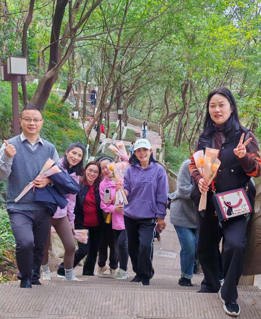 春和景明,芳菲正好。为庆祝“三八”妇女节,丰富教职工精神文化生活,3月6日下午,我院组织教职工前往重庆市半山崖线大化步道——佛图关公园,开展以“巾帼心向党·奋进新征程”为主题的文化健身活动。