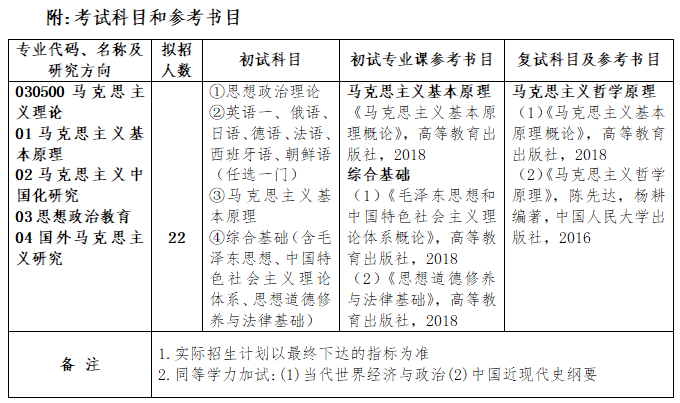 2021年,我院马克思主义理论一级学科面向全国招收硕士研究生,欢迎广大考生踊跃报考。考试科目和初试、复试的参考书目如下: