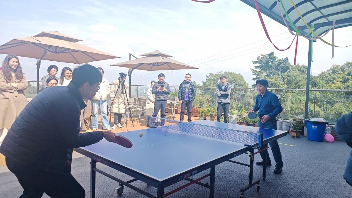 饱餐一顿后稍事休息,就来到了激动人心的趣味运动会环节。两个学院纷纷派出教师代表,分别进行了扔飞镖、运气球、吹乒乓球和乒乓球“对抗赛”四个简单有趣的比赛。在一系列激烈而又充满乐趣的比拼后,两个学院的领导分别为积极参与的老师们颁发了奖品。