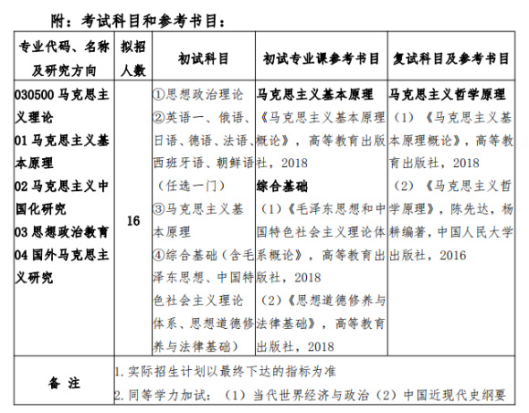 2020年,我院马克思主义理论一级学科面向全国招收硕士研究生,欢迎广大考生踊跃报考。考试科目和初试、复试的参考书目如下:
