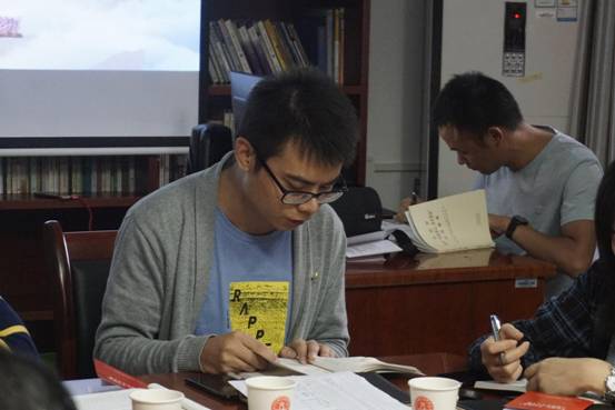 接下来,学院党总支书记钟谟智、教工党支部书记程波、研究生党支部书记徐跃峰分别带领全体党员同志原原本本通读和集中学习了《习近平关于“不忘初心、牢记使命”论述摘编》第一章至第四章的内容。其中,钟谟智同志领学第一章“中国共产党人的初心和使命,就是为人民谋幸福,为中华民族谋复兴”和第二章“新时代中国共产党的历史使命”;程波同志领学第三章“用习近平新时代中国特色社会主义思想武装全党”;徐跃峰同志领学第四章“坚定理想信念,始终是共产党人安身立命的根本”。
