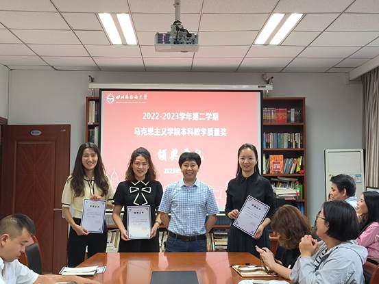 王正宇副院长为获得学期教学质量奖的三位教师颁发荣誉证书