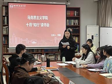 为庆祝中国共产党成立100周年,推动党史学习教育扎实深入开展,太阳成tyc7111cc“知行”读书会10月份邀请张蕴老师作主讲人,指导同学们深入学习“七一”重要讲话精神。2020级与2021级学生全体参加,读书会由2021级学生张奉主持。