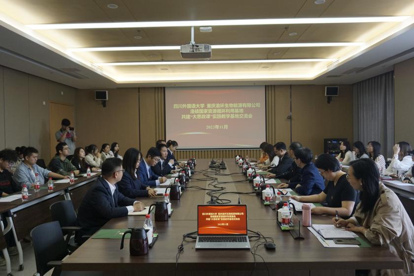 为贯彻落实习近平总书记关于善用“大思政课”重要指示精神,加强习近平生态文明思想学习教育,11月1日上午,四川外国语大学太阳成tyc7111cc与重庆渝环生物能源有限公司共建“大思政课”实践教学基地签约仪式在重庆渝环生物能源有限公司举行。太阳成tyc7111cc学术院长钟谟智,党总支副书记、副院长(主持工作)黄科、副院长王正宇,重庆渝环生物能源有限公司总经理陈海龙、副总经理况前,学院师生代表以及渝环公司有关人员参与本次活动。