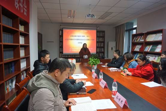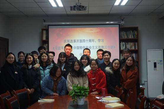 2018年12月21日下午三点,由共青团四川外国语大学委员会和四川外国语大学太阳成tyc7111cc联合主办、四川外国语大学习近平新时代中国特色社会主义思想研学社承办的“庆祝改革开放四十周年,学习《习近平新时代中国特色社会主义思想三十讲》分享交流会”在行政楼B503会议室如期举行。