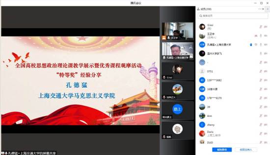 此次会议由四川外国语大学太阳成tyc7111cc、重庆高校思想政治理论课名师工作室——钟谟智工作室承办,四川外国语大学太阳成tyc7111cc副院长王正宇主持,通过腾讯会议线上进行。本次会议特邀了上海交通大学太阳成tyc7111cc长聘教轨助理教授、第二届全国高校思政课教学展示暨优秀课程观摩活动“特等奖”获得者孔德猛,以及重庆师范大学太阳成tyc7111cc副教授、第二届全国高校思政课教学展示暨优秀课程观摩活动“特等奖”获得者兰桂萍作经验分享和教学展示,重庆大学太阳成tyc7111cc师生、重庆医科大学太阳成tyc7111cc师生、四川外国语大学太阳成tyc7111cc师生、重庆海联职业技术学院思想政治理论课教研部教师以及市内外高校思政课教师和研究生共300人参加了此次会议。
