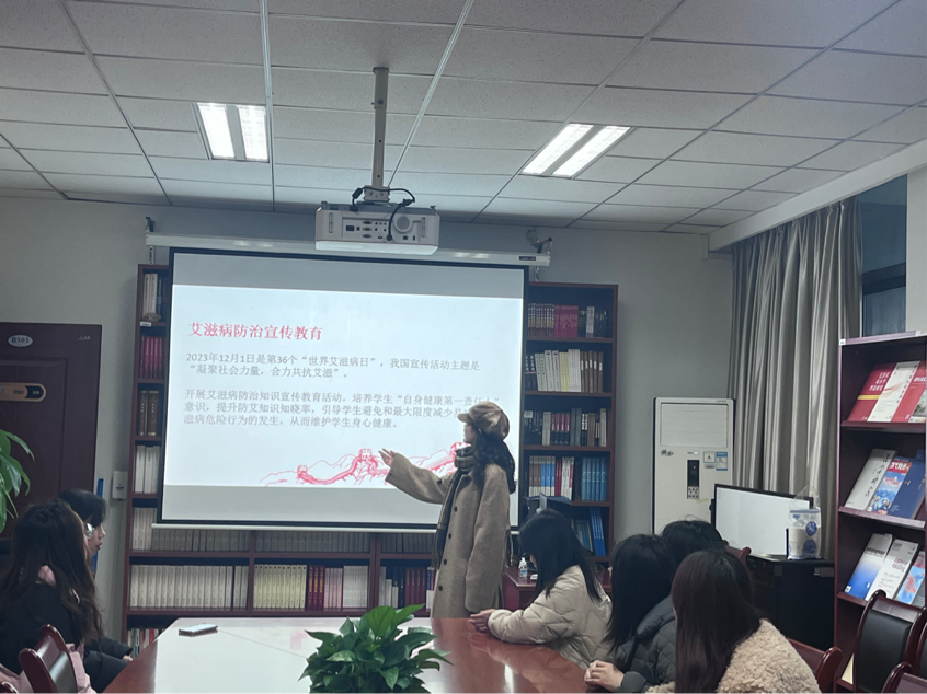 首先,班长吴芮向同学们开展了艾滋病防治知识宣传教育活动,培养学生自身健康第一责任人意识,提升防艾知识知晓率,维护学生身心健康。