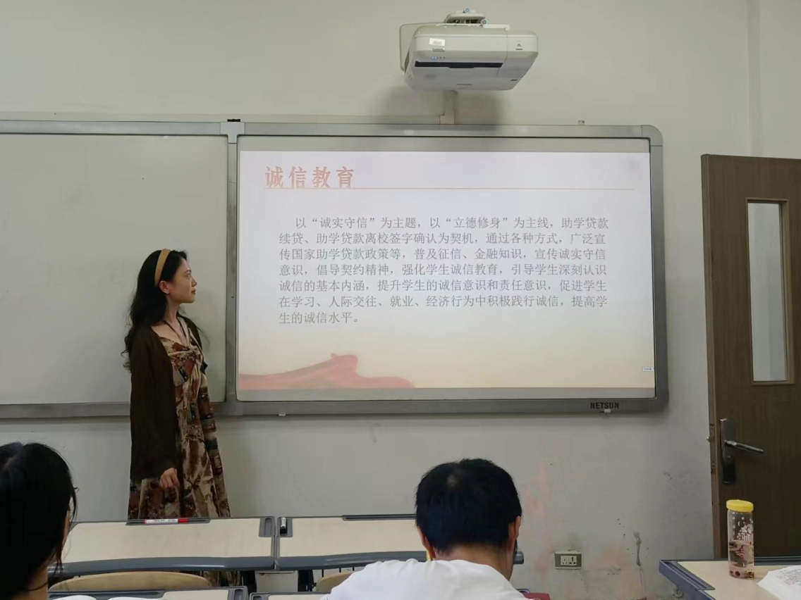 首先,在诚信教育方面,由2023级马克思主义理论班班长吴芮进行分享,介绍了国家助学贷款政策,并以此为契机,宣传了征信、金融知识,强化了同学们的诚信意识。通过分享助学贷款续贷、离校签字确认的注意事项,鼓励学生们珍惜信用,按时还款,树立个人良好信用记录。通过讲述一些因不诚信而带来的严重后果的实例,让同学们深刻认识到诚信对于个人成长和社会发展的重要性。此外,本次主题教育活动还采用了多种形式,如案例分享、小组讨论等,让同学们深刻认识到诚信对于个人成长和社会发展的重要性。