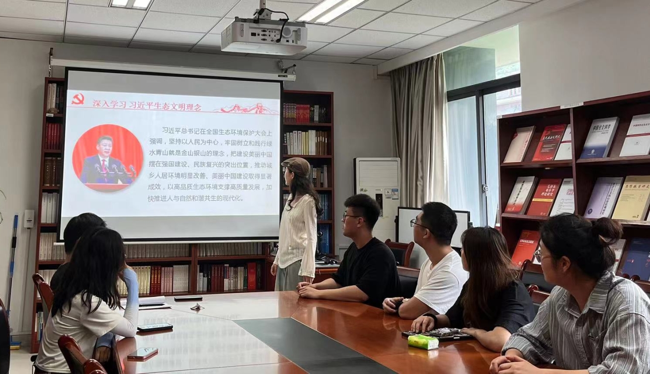 4月16日, 2023级全体研究生在立德楼B503开展了以习近平生态文明思想为主题的教育活动。2023级马克思主义理论班班长吴芮与同学们共同解读了习近平生态文明思想的深刻内涵,树立了“尊重自然、顺应自然、保护自然”的生态文明理念。通过集中学习的形式,向同学们普及了更多环保知识,同学们纷纷表示受益良多。