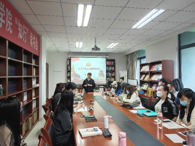 为贯彻落实党的教育方针,落实立德树人根本任务,我院于5月10日在立德楼B503开展本月大学生主题教育活动。本次活动由22级班长张恬恬主持,辅导员王雨潇以及21级、22级研究生参与。