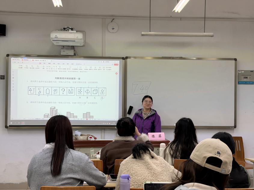 为将模拟测试的成效转化为真正的备考能力,陈老师对试卷进行了深度复盘。陈老师围绕试题结构、解题思路与常见误区展开细致讲解,帮助同学们精准识别知识盲区、明确后续学习方向。课后,同学们纷纷表示,本次“模拟+讲解”的授课形式针对性强、实效性高,不仅加深了对公考题型特点的理解,更有效提升了实战应试能力。