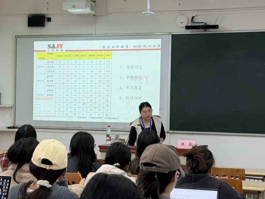 为精准赋能我院研究生公职就业需求,11月10日,我院“公职就业护航计划”公开课第1期在歌乐楼A03教室顺利开讲,课程由重庆某培训机构讲师陈菲老师主讲,2024级马克思主义理论1班全体研究生参与。
