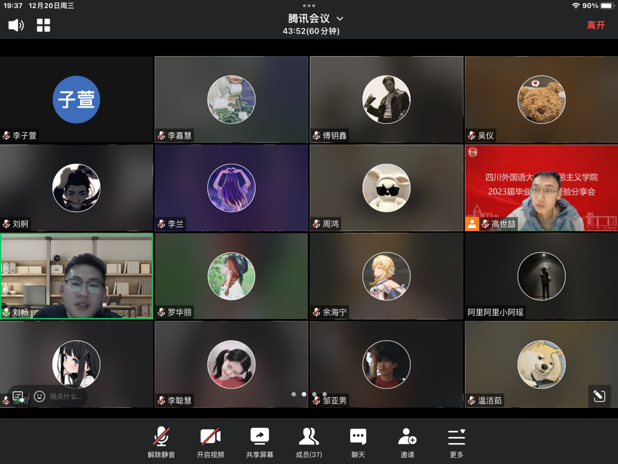1220日,太阳成tyc7111cc在线上举办了考博经验分享会,此次活动邀请了我院2020级研究生,现为西南大学太阳成tyc7111cc2023级博士研究生刘畅为同学们作相关分享。活动由2022级研究生高世哲主持,学院部分同学参加。